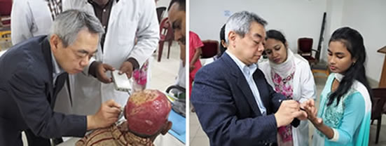日本・バングラデシュ医療協会 (JBMA) が支援している医師交流プログラムにより、これまで計9名のバングラデシュ医師が東京女子医科大学病院での研修を行っています。さらに日本から医師を派遣し、現地の臨床指導を行うという第2のミッションを遂行していくため、第3回目のダッカ医科大学形成外科熱傷センター (National Institute of Burn and Plastic Surgery, Dhaka Medical College & Hospital) 訪問を、2017年3月19日(日)~23日(木) に行いました (24日帰国)。 翌3月20日は、ホテルからダッカ医科大学形成外科へ向かい、Kalam教授やDr.Senの出迎えを受け、我々のミッションがスタートしました。 |