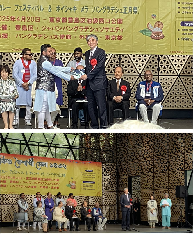 正午の式典にて駐日大使、外務省の大使、豊島区長に続きJBMAを代表して常務理事の櫻井教授がベンガル語を交えてのスピーチを行いました